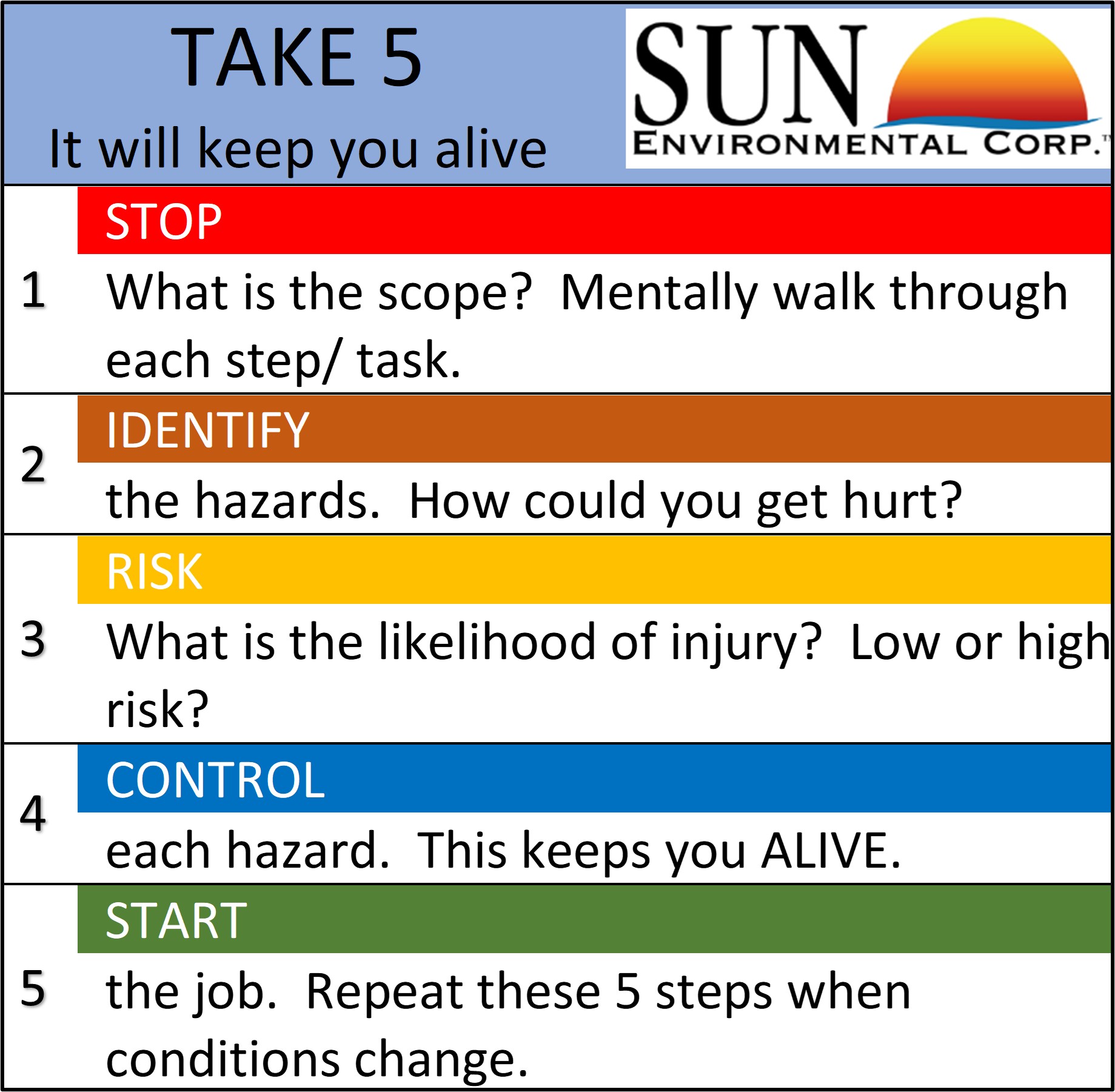 Sun Environmental Corp. is committed to providing a safe and healthy environment for all of its employees. Our safety goals include: